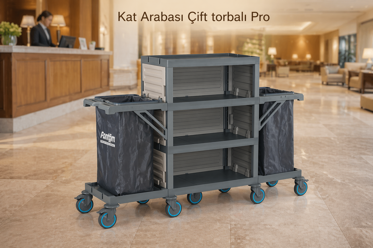 It provides practicality and standard in housekeeping services of businesses such as resorts, hotels, hospitals, dormitories, residences, etc. It is resistant to bumps thanks to its silent, cushioned and braked wheels that can move easily. It offers the possibility of fixing on inclined planes with braked wheels. It provides fast and practical service with its flexible features. Provides great convenience in housekeeping services with its modular and ergonomic structure. With its optional accessory, it offers the opportunity to use your laundry compartment as 2 x 60 liters. The complete body structure is made of plastic, allowing indoor and outdoor use, it is not affected by cleaning with water in any way and does not rust, the raw material of the product is poly propylene material resistant to chemical substances and heat. The fact that the front side of the module is open and the other three sides are closed is aesthetically different. The fact that the module has three floors and four shelves provides users with more comfortable work and service opportunities. In addition, the module offers users the opportunity to collect 2 x 120 liters of laundry. Push handles and garbage bag locks on both sides provide ease of use.