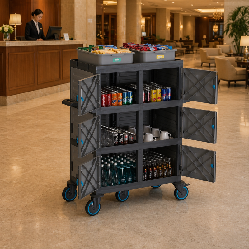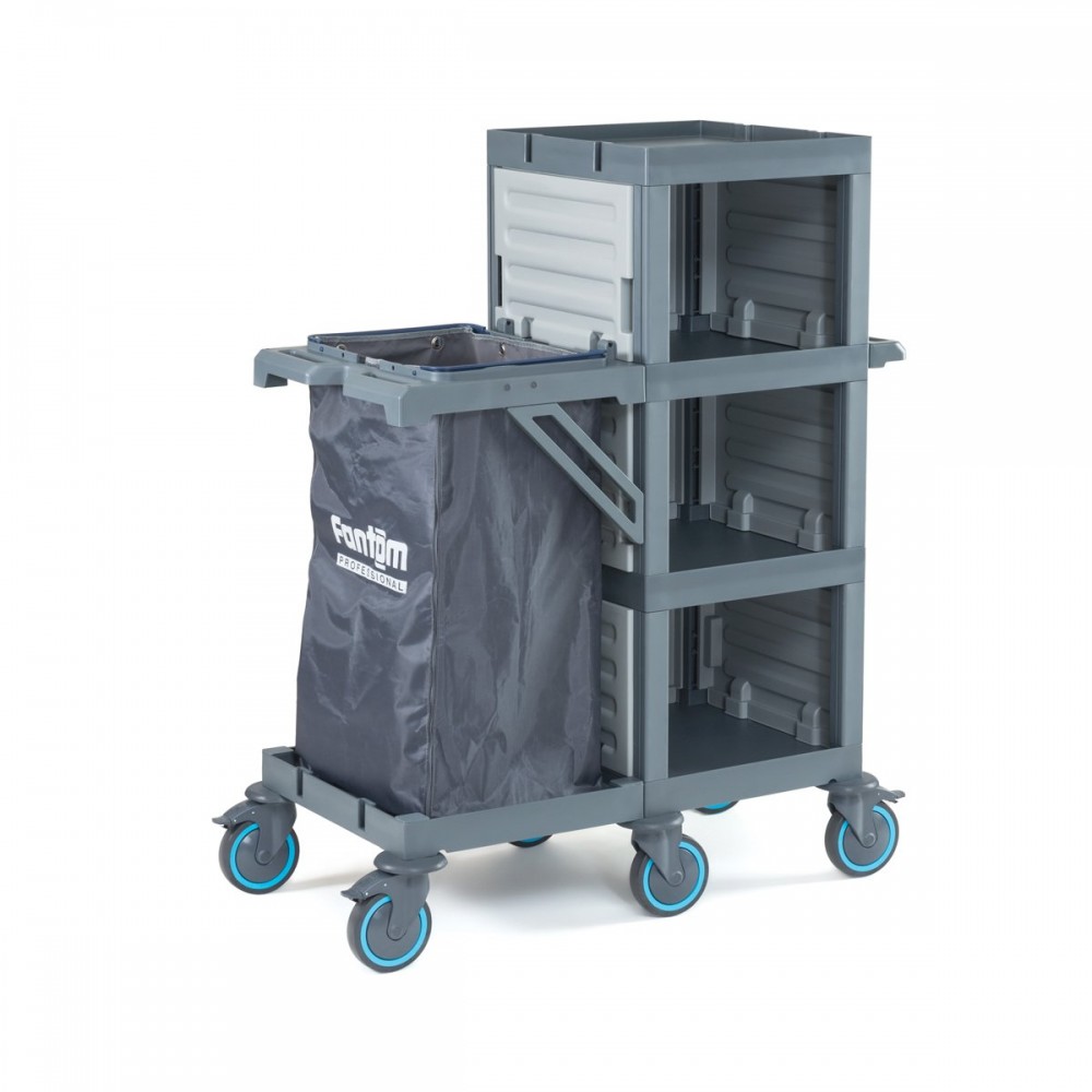 Kullanım alanları daha dar olan otel, hastane, yurt, rezidans gibi işletmelerin kat hizmetlerinde pratiklik ve standart sağlar. Kolayca hareket edebilen sessiz, tamponlu ve frenli tekerlekleri sayesinde çarpmalara karşı dayanıklıdır. Frenli tekerlekler ile eğik düzlemlerde sabitleme imkanı sunar. Esnek özellikleriyle hızlı ve pratik bir şekilde kat hizmeti sağlar. Modüler ve ergonomik yapısı ile işlerinizi kolaylaştırır. Opsiyonel aksesuarı ile çamaşır bölmenizi 2 x 60 lt olarak kullanma imkanı sunar. Komple gövde yapısının plastik olması, iç ve dış mekan kullanımlarına olanak sağlar, su ile yapılan temizliklerden hiç bir şekilde etkilenmez ve paslanma yapmaz, ürünün hammaddesinde kimyasal maddelere ve ısıya dayanıklı Poli Propilen malzeme kullanılmıştır. Modülün ön tarafının açık, diğer üç tarafının kapalı olması estetik açıdan farklılık arz etmektedir. Dört adet raf ve iki taraflı itme sapı sayesinde kullanıcılarına daha rahat kat hizmeti verme olanağı sunar. Modül, 120 lt hacminde çamaşır toplama imkanı ile kat hizmetlerinin en iyi şekilde yapılmasına imkan verir. Çöp torba kilitleri sayesinde kullanım rahatlığı sağlar.