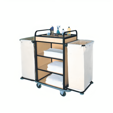 Temizlik arabaları, kovalı ve çöp toplama bölmeli yapılarıyla temizlik işlemlerini kolaylaştırır. Bu tür arabalar, temizlik malzemelerinin düzenli bir şekilde taşınmasını ve çöplerin toplanmasını sağlar. Özellikle geniş alanların temizlenmesinde pratik bir çözüm sunar.