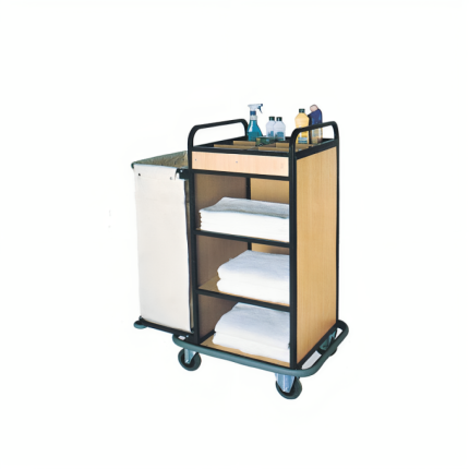 Kat arabası, otel temizlik hizmetlerinde kullanılan ve iş gücünü önemli ölçüde kolaylaştıran bir ekipmandır. Temizlik malzemeleri, çarşaflar ve diğer gerekli eşyaların taşınmasını pratik hale getirir. Özellikle büyük otellerde, geniş ve yoğun temizlik alanları, kat arabasının işlevsel tasarımı sayesinde daha hızlı ve etkili bir şekilde yönetilir. Kat temizlik arabası, temizlik personelinin zamanını verimli kullanmasına olanak tanır; böylece, personel odaları daha kısa sürede temizleyebilir ve düzen sağlayabilir. Bu araçlar, farklı bölmelere ve raflara sahip olup, temizlik malzemelerinin düzenli bir şekilde yerleştirilmesine olanak tanır. Ayrıca, tekerlekli yapısı sayesinde kolayca hareket ettirilebilir, bu da personelin yorulmadan işlerini yapmalarını sağlar.