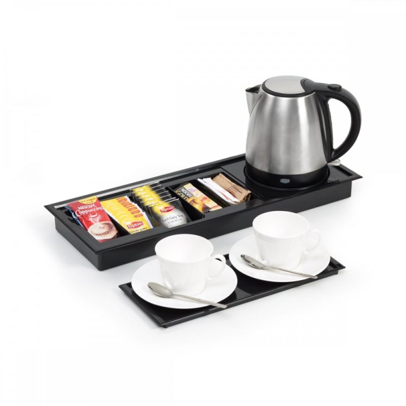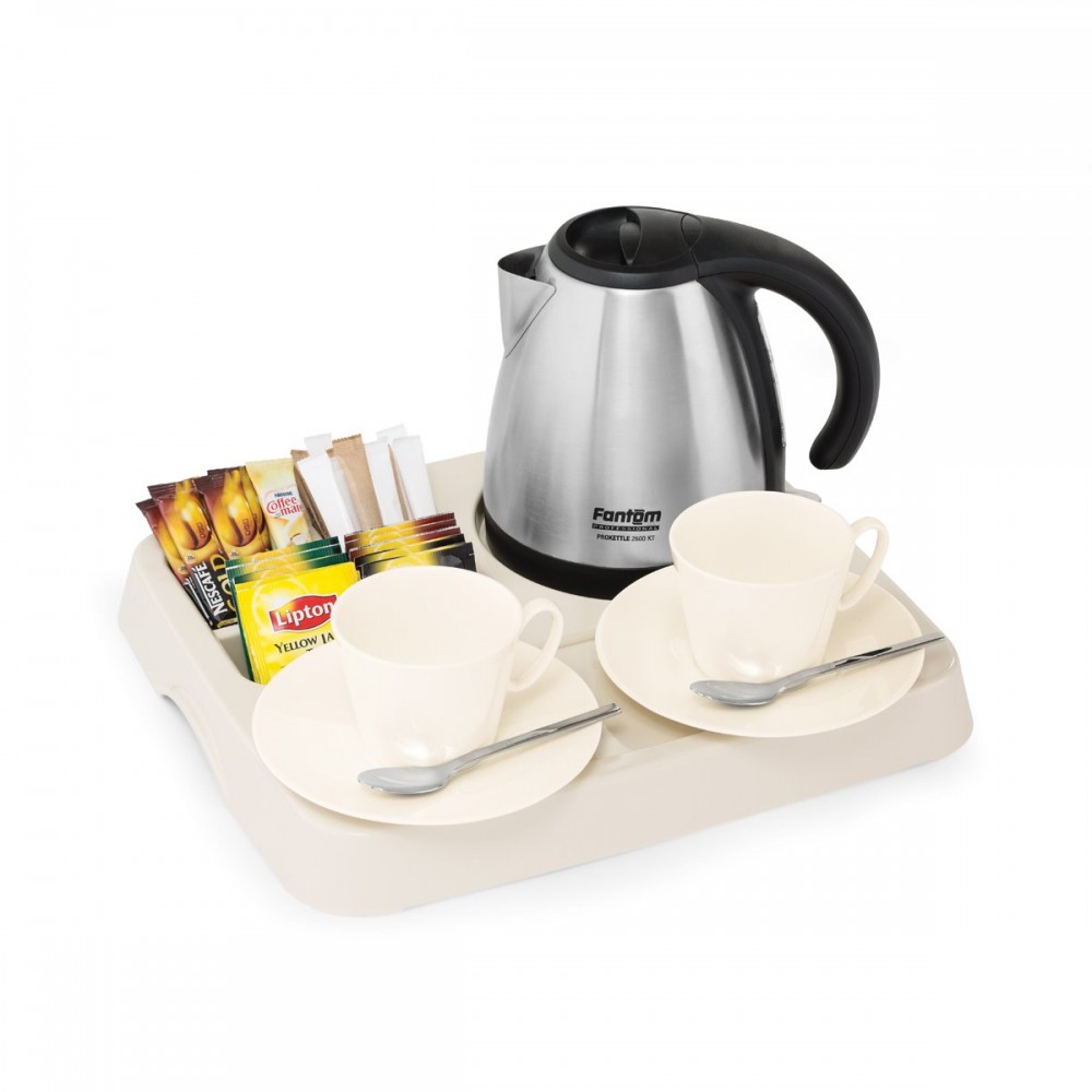 Otellerin odalarında misafirlerine çay, kahve ve su ikramında kullandıkları hoşgeldin tepsisi, modern ve estetik tasarımı, işlevselliğiyle tercihcihlerinde ilk sırada yer almaktadır. Gövdesi ABS olan ikram tepsisinde kettle, çay, kahve, şeker ve fincan bölmesi yer almaktadır.